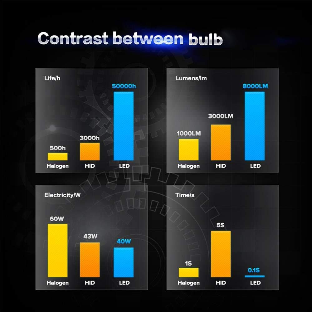 8,000lm extremely bright output per pair totally, 300%+ brighter than halogen,
