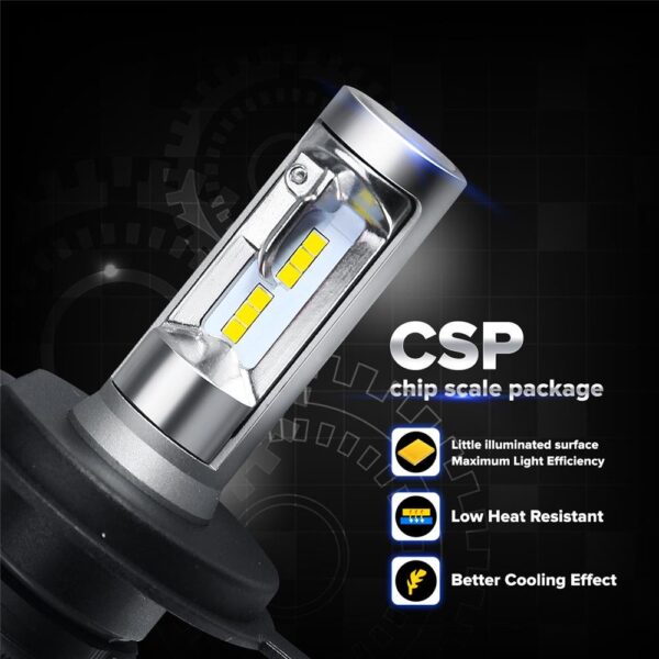 - Super Power: H4 9003 led bulbs uses high power CSP LED chips, 360 degree illumination. 50W/ set (25W/bulb), 8000LM per pair and 6500K cool white lights lighting up the road which makes a huge difference contrast to dim halogen light