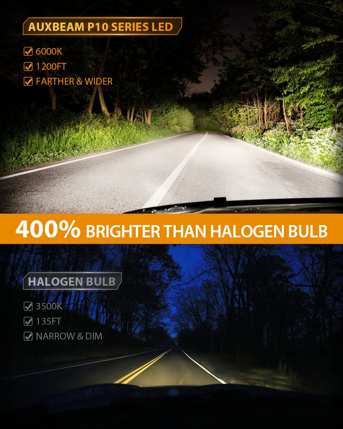 Auxbeam H8/H9/H11 Led Bulbs 15000lm P10 Series High Brightness Led Conversion Kits Upgraded Mini Size Led Fog Light Halogen Replacement 6000K Xenon White