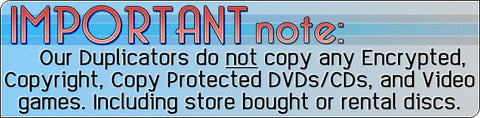 NOTE: The duplicators cannot duplicate copy protected CDs or DVDs.
